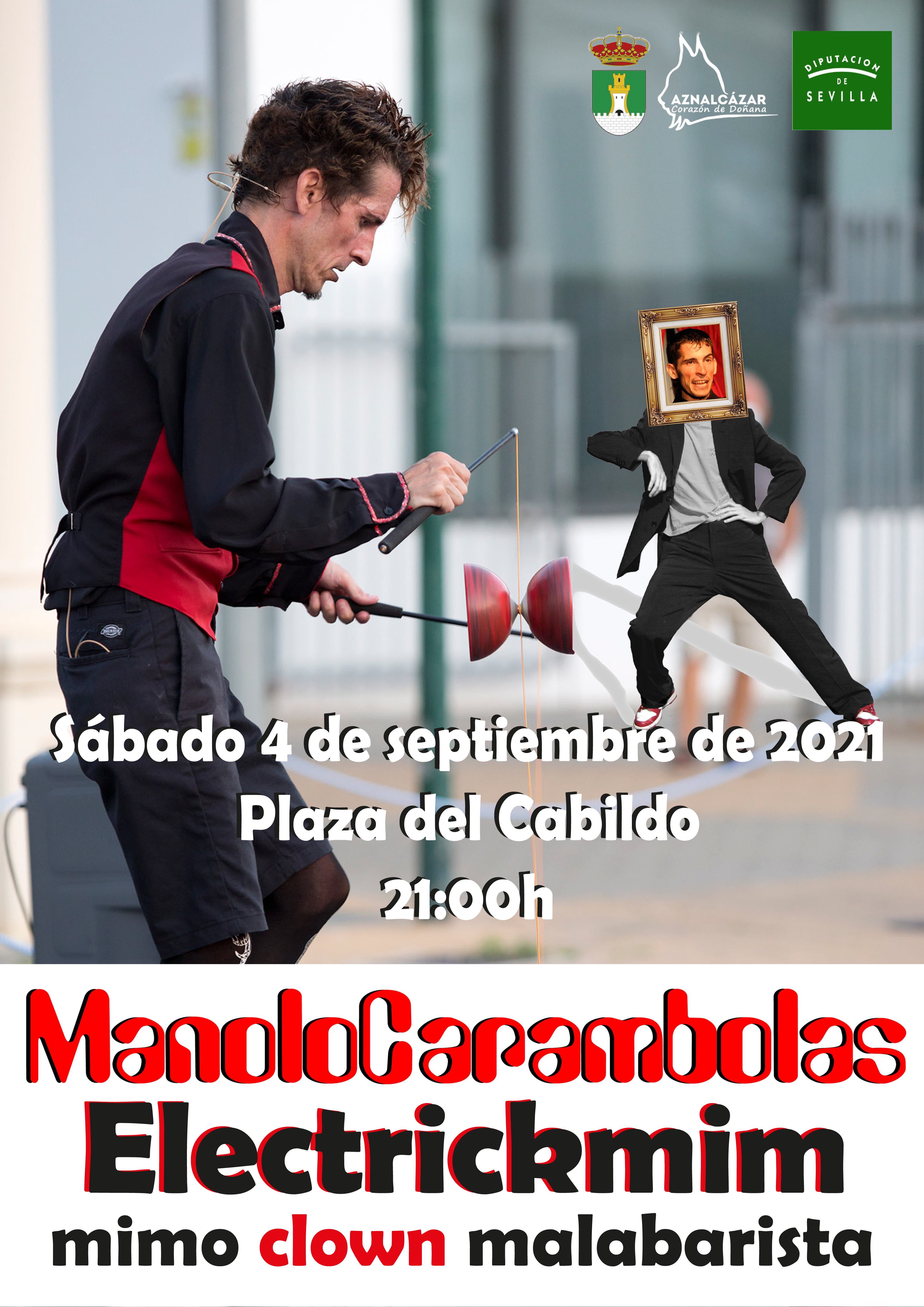 El próximo sábado 4 de septiembre a las 21:00h en la Plaza del Cabildo disfrutaremos de los malabares de Manolo Carambolas con su espectáculo Electrickmim.