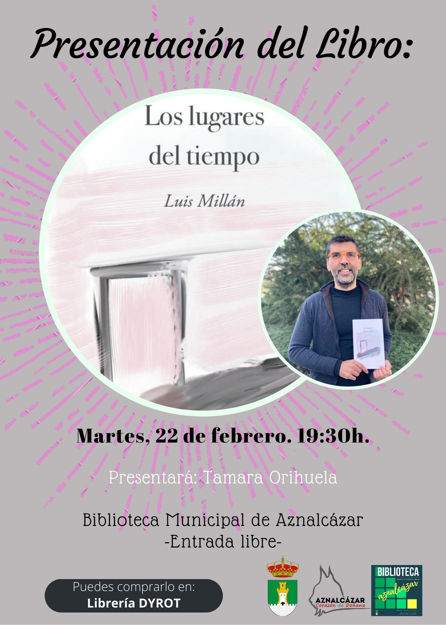 El poeta Luis Millán, vecino de Aznalcázar, presentará su poemario titulado “Los lugares del tiempo”, cuya portada ha sido diseñada por el pintor Antonio Saborido, el próximo 22 de febrero a las 19:30h en la Biblioteca Municipal.