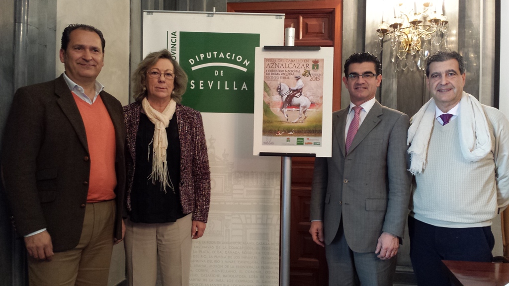 Hoy se ha presentado en la Casa de la Provincia el Concurso de Doma Vaquera que ha organizado el Ayuntamiento de Aznalcázar para celebrar el Día de Andalucía. Al acto han asistido el Gerente de Prodetur, D. Amador Sánchez, la Alcaldesa de Aznalcázar, Dª. Dolores Escalona, D. Diego Mora Sánchez, Presidente de la Asociación de Criadores de Ganado Vacuno y Yeguar de Aznalcázar y D. Pepe Navalón de la empresa Trocao, encargada de organizar el Concurso y el resto de actividades ecuestres que tendrán lugar los días 28 de febrero y 1 de marzo.