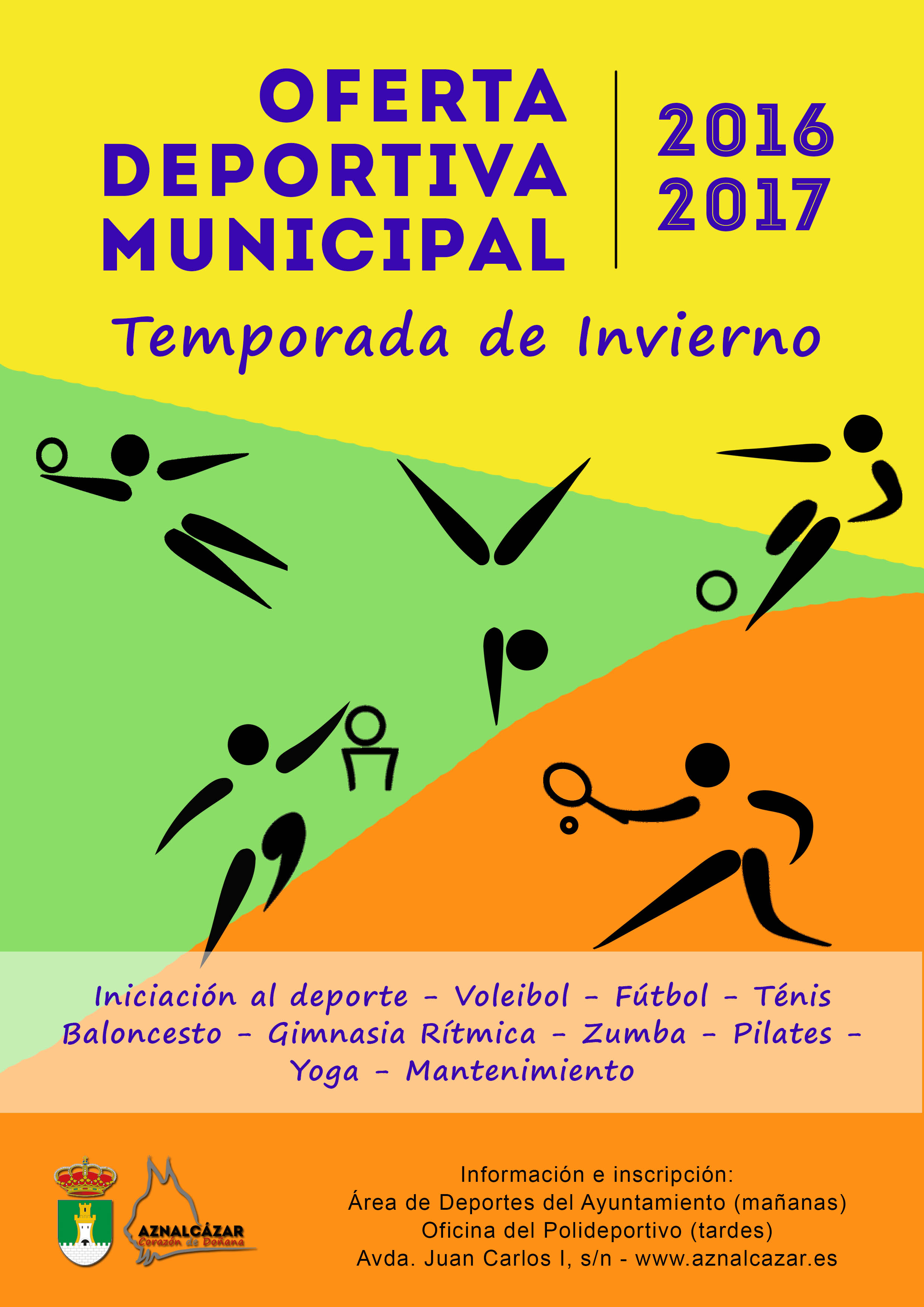 Para la temporada de invierno de 2016-2017 el área de deportes del Ayuntamiento de Aznalcázar lanza la siguiente oferta de actividades: