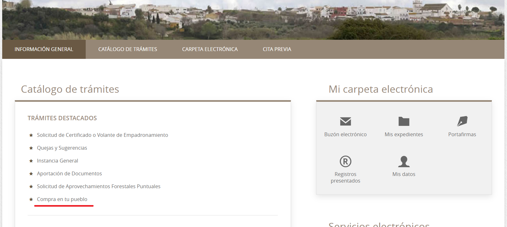 - En trámites destacados encontrarás: Compra en tu pueblo (haz clic)