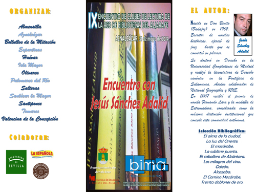El dia 31 de mayo en la biblioteca municipal de Aznalcázar encuentro de clubes de lectura de la red de bibliotecas del aljarafe, estara presente Jesús Sánchez Adalid.