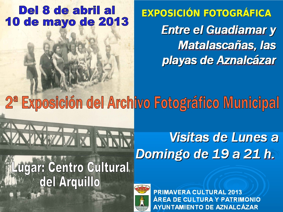 EXPOSICIÓN FOTOGRÁFICA "ENTRE EL GUADIAMAR Y MATALASCAÑAS, LAS PLAYAS DE AZNALCÁZAR", HASTA EL 10 DE MAYO EN EL CENTRO C. DEL ARQUILLO, DE 19 A 21 h.