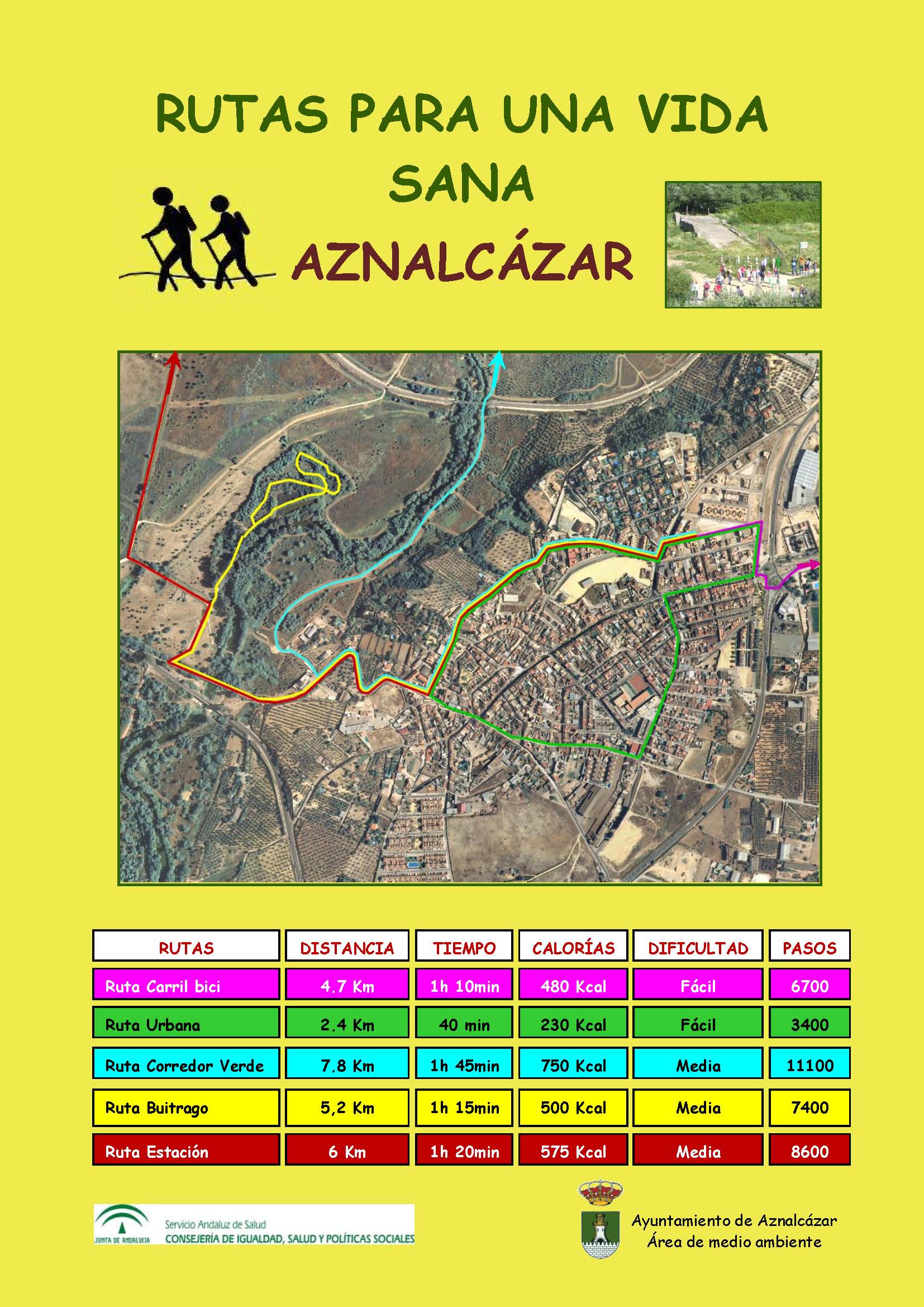 El proyecto Rutas para la Vida Sana en el municipio de Aznalcázar es una iniciativa de su Ayuntamiento y de la Consejería de Igualdad, Salud y Políticas Sociales destinado a promover el reconocimiento de las rutas que los ciudadanos utilizan para realizar actividad física (principalmente caminar) como un recurso municipal de promoción de la salud.