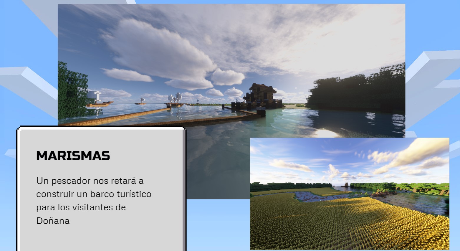 De esta forma, han desarrollado un entorno educativo en Minecraft sobre el patrimonio histórico y cultural del municipio de Aznalcázar. Así, cuando el niño o niña se conecta al “mundo” de AznalCraft, se le guía por la historia, lugares y personajes más emblemáticos de la localidad, pudiendo interactuar tanto con ellos.