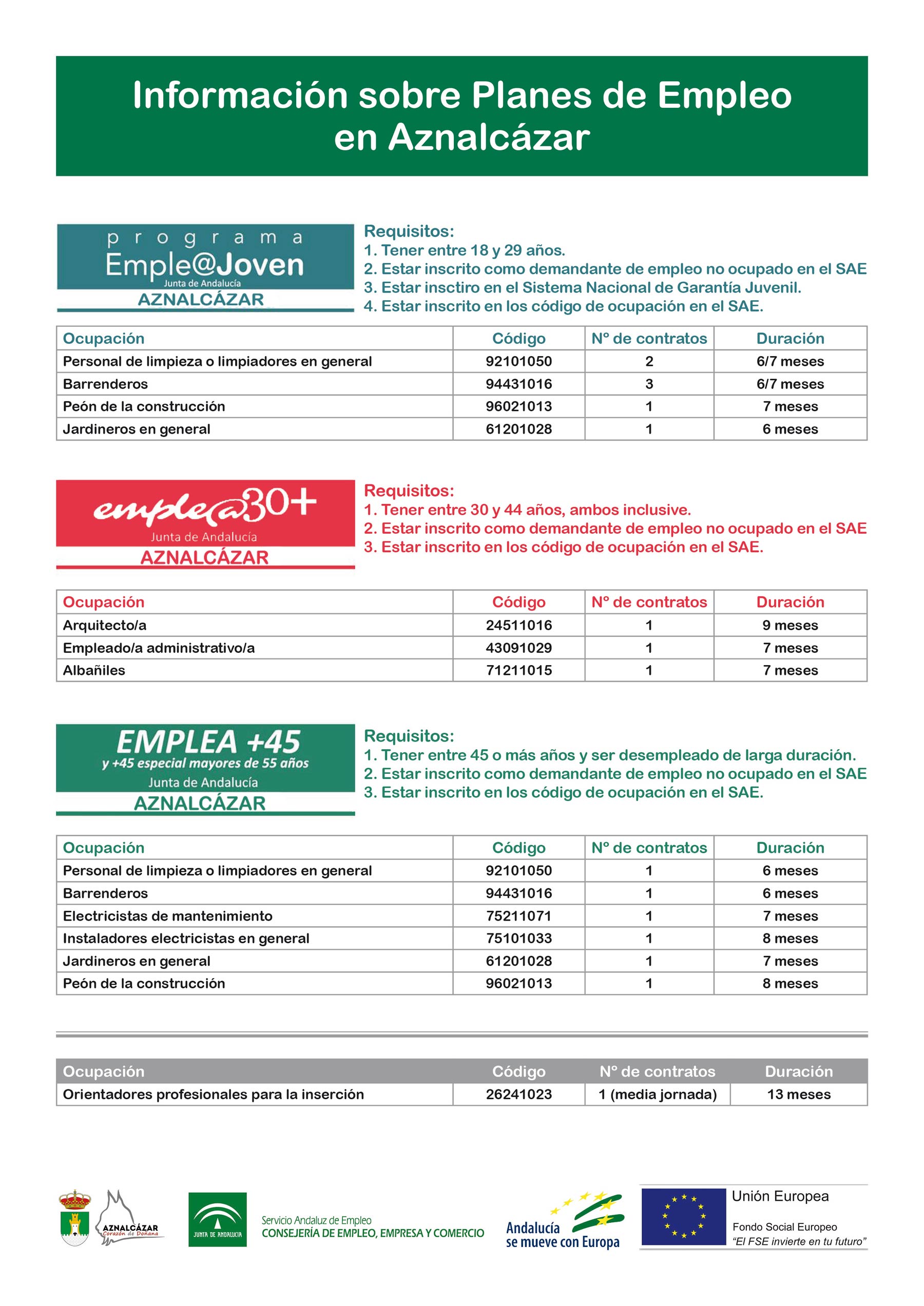 de empleo de la Junta de Andalucía y los requisitos necesarios para optar a los diferentes