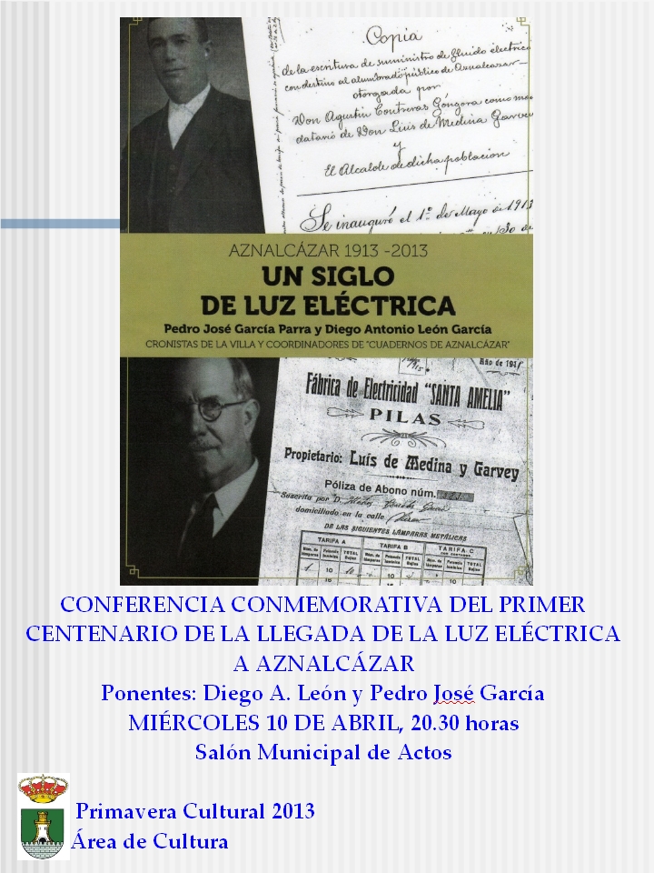 CENTENARIO DE LA LLEGADA DE LA LUZ ELÉCTRICA A AZNALCÁZAR, BAJO EL TÍTULO 1913-2013, UN SIGLO DE