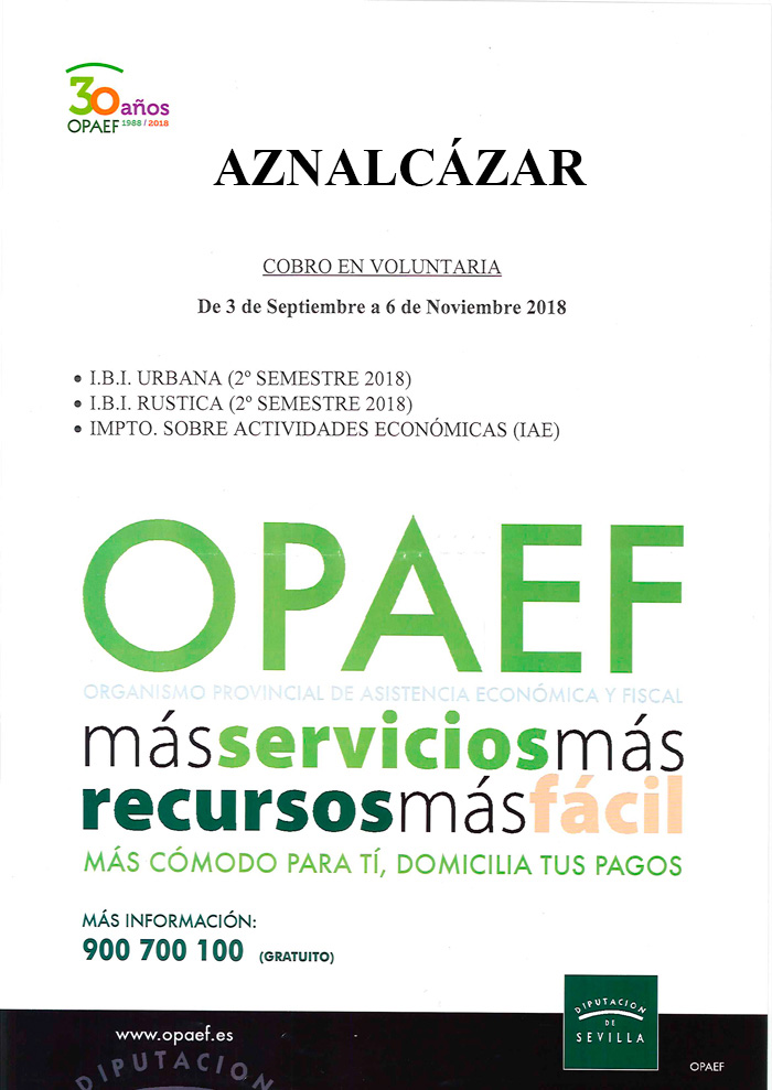 OPAEF INFORMA DE LA APERTURA DEL PLAZO DE COBRO EN VOLUNTARIA DE VARIOS IMPUESTOS DESDE EL 3 DE SEPTIEMBRE