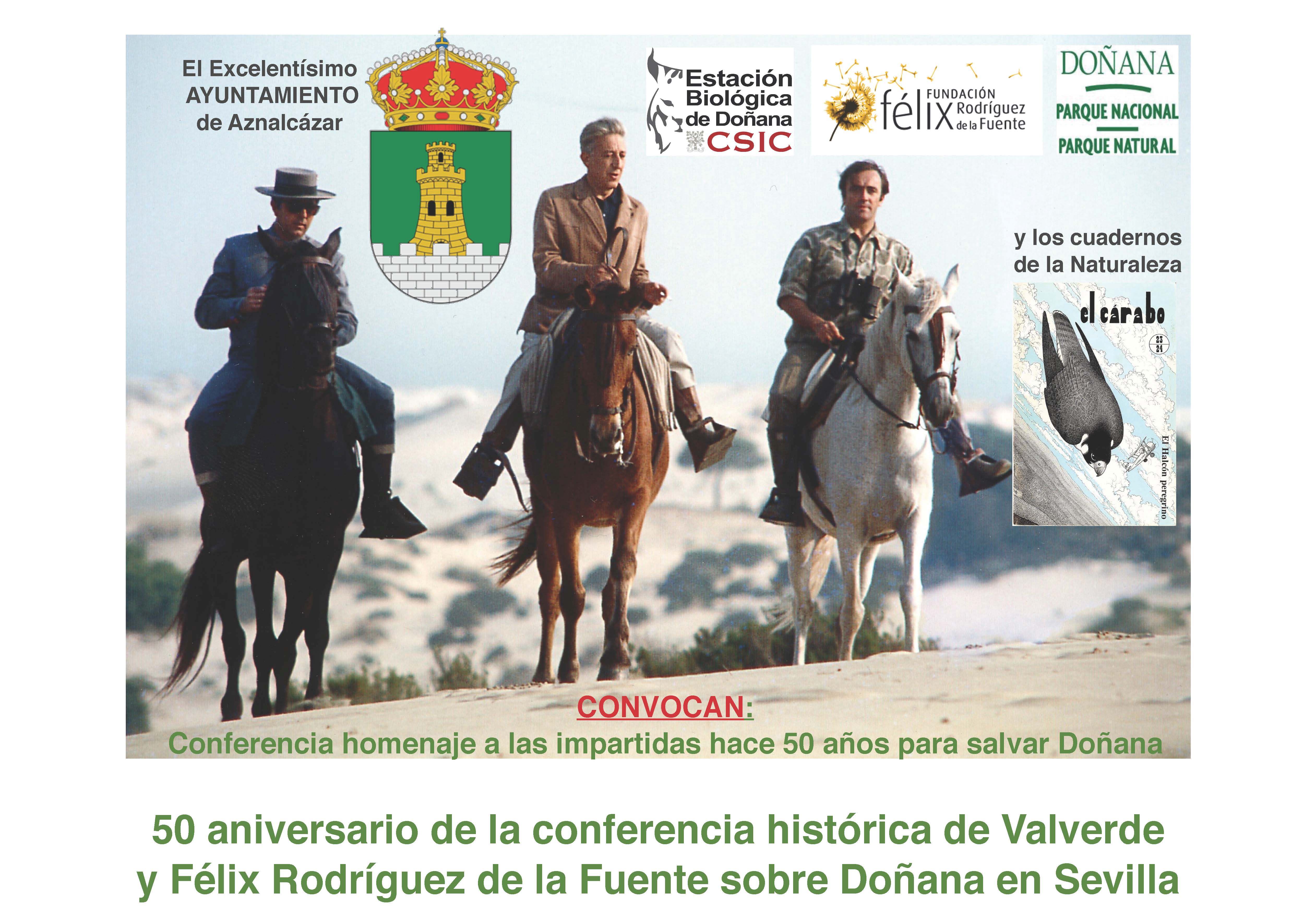 Se trata de una fecha relevante puesto que es el 50 Aniversario de la conferencia histórica de José Antonio Valverde y Félix Rodríguez de la Fuente, que sirvió para salvar Doñana. Por este motivo, el editor de las memorias del profesor José Antonio Valverde y biógrafo de Félix Rodríguez de la Fuente, D. Benigno Varillas impartirá una charla con el contenido de las celebradas hace 50 años: “Doñana y el significado de la cetrería en la concienciación ecológica del hombre”.