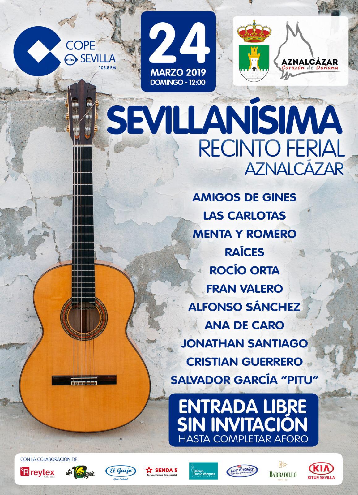 La gran gala de las sevillanas se celebra este año en Aznalcázar. Será el domingo 24 de marzo a las 12:00h en el recinto ferial con entrada libre hasta completaraforo.