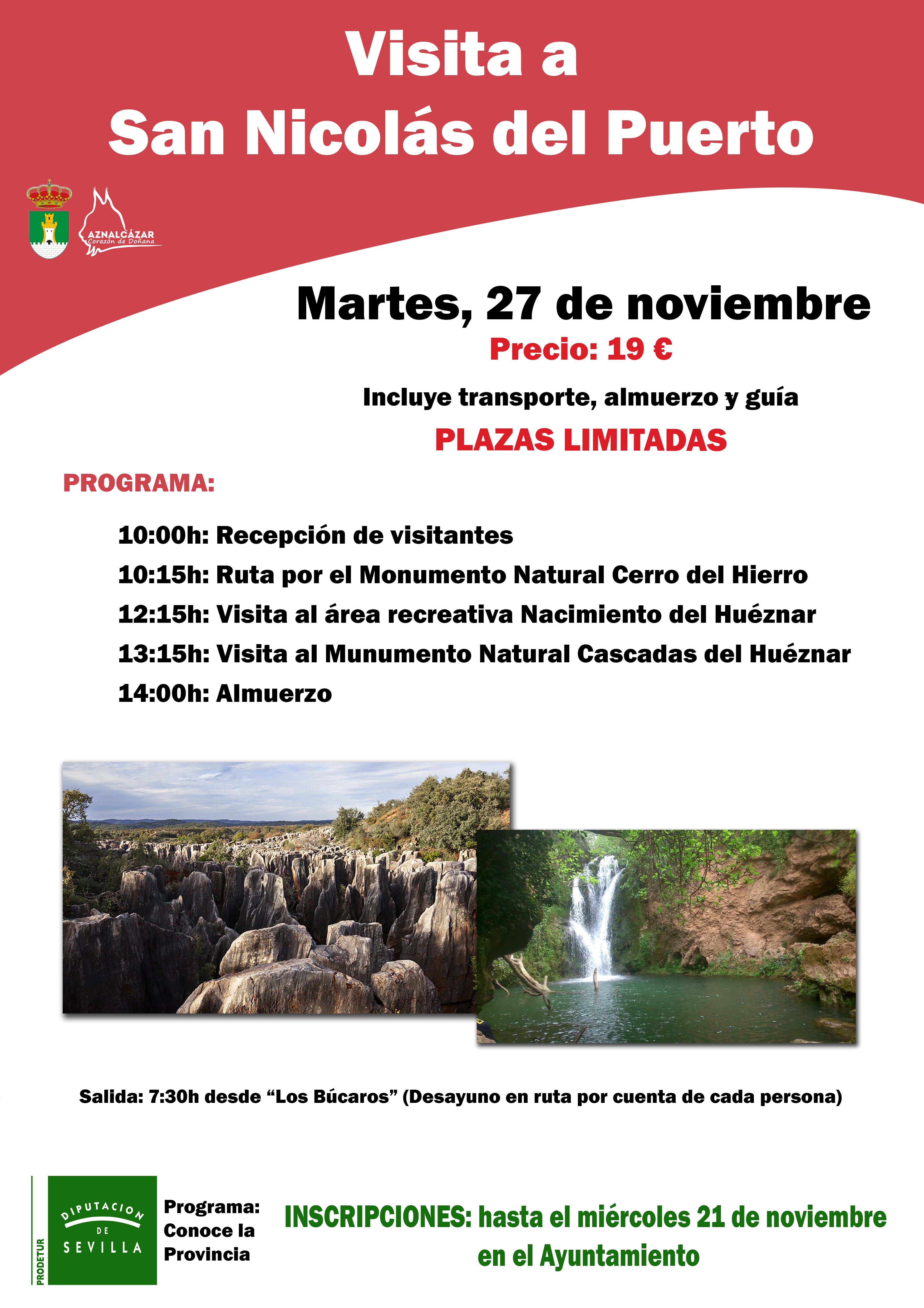 A través del programa 'Conoce la Provincia' de Prodetur (Diputación de Sevilla) se ha organizado en esta ocasión la visita a San Nicolás del Puerto. La fecha prevista es el martes 27 de noviembre y el programa es elsiguiente: