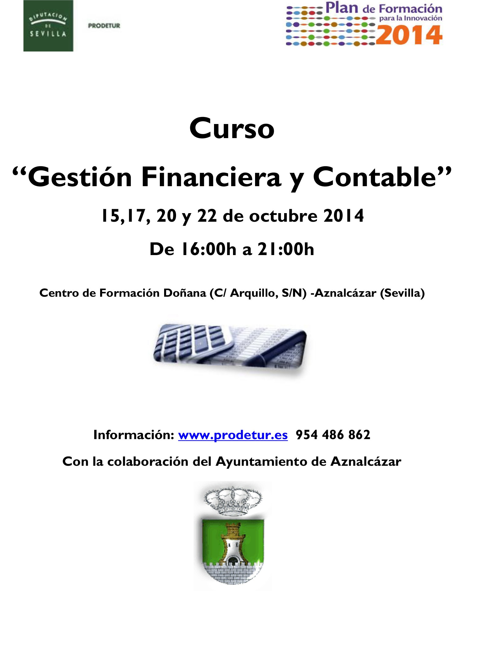 Prodetur dentro de su Plan de Formación para la Innovación organiza en Aznalcázar un curso sobre Gestión Financiera y Contable.