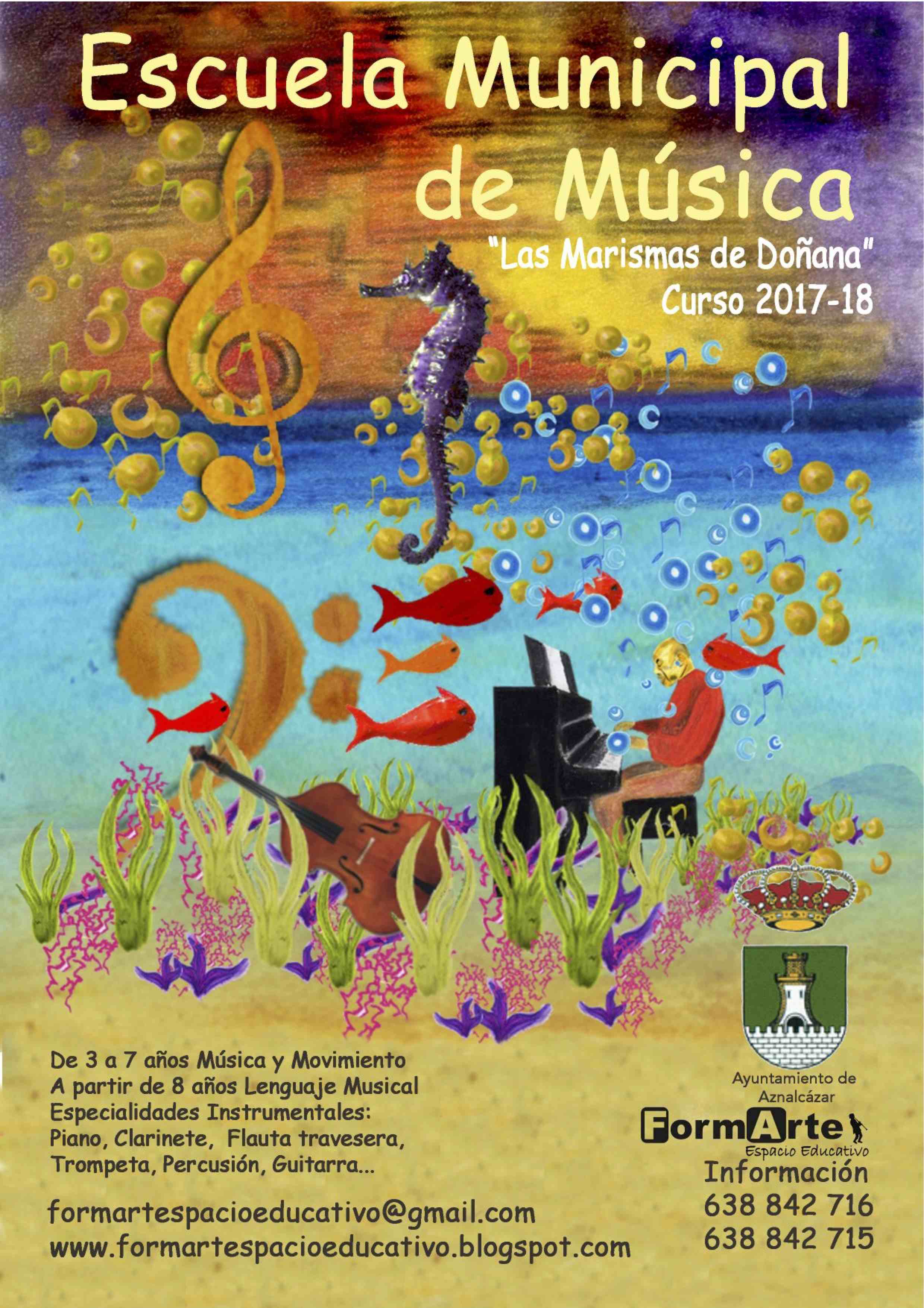Música y movimiento, lenguaje musical, piano, guitarra, flauta... y taller de teatro, cortos, música moderna...