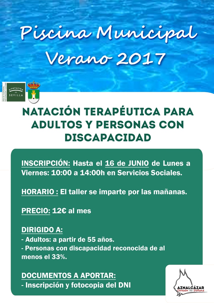 Aquellas personas que deseen participar en el taller de natación terapéutica ya pueden inscribirse en el área de Servicios Sociales de lunes a viernes en horario de 10:00 a 14:00h. El plazo de inscripción estará abierto hasta el 16 de junio.