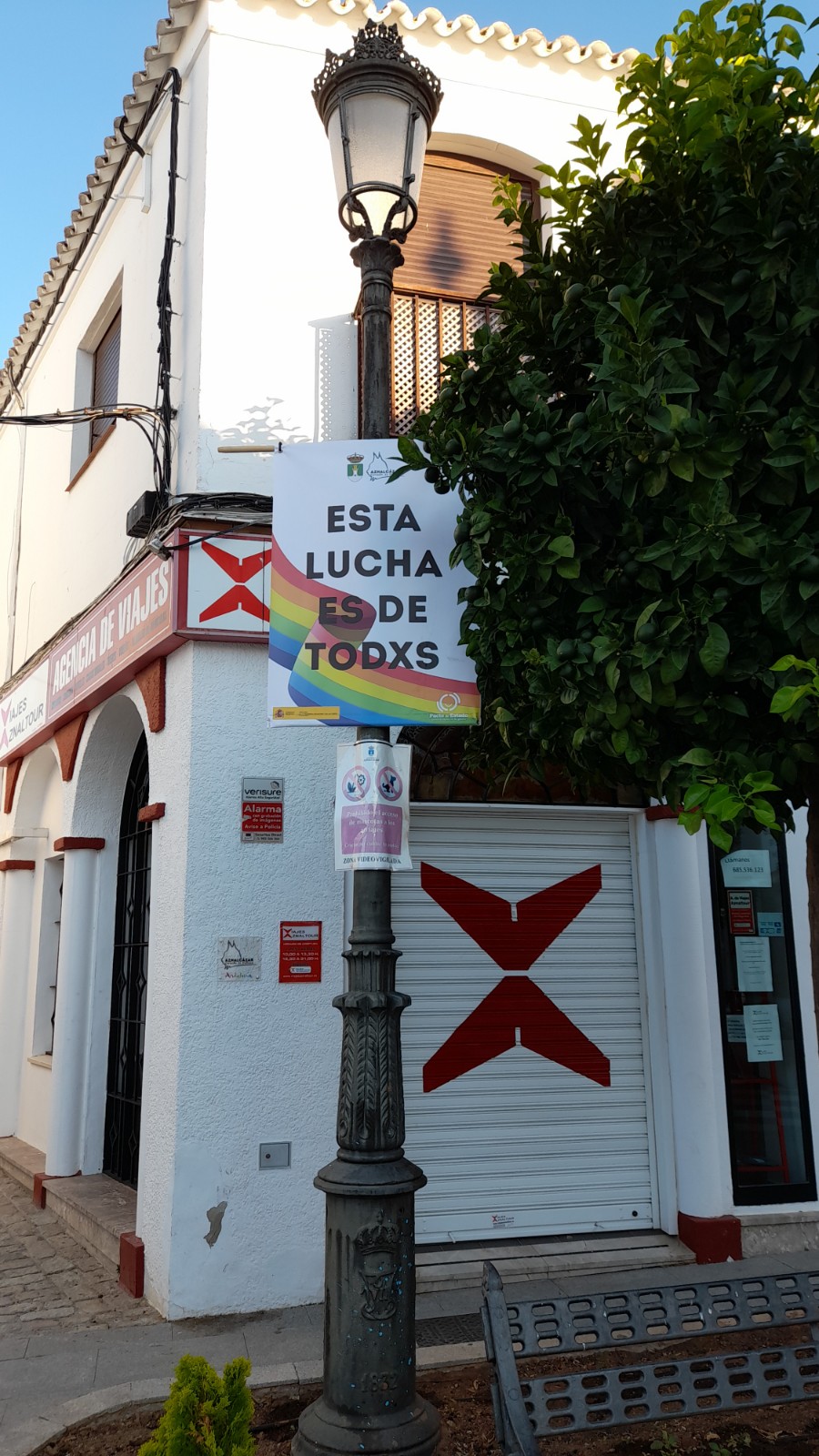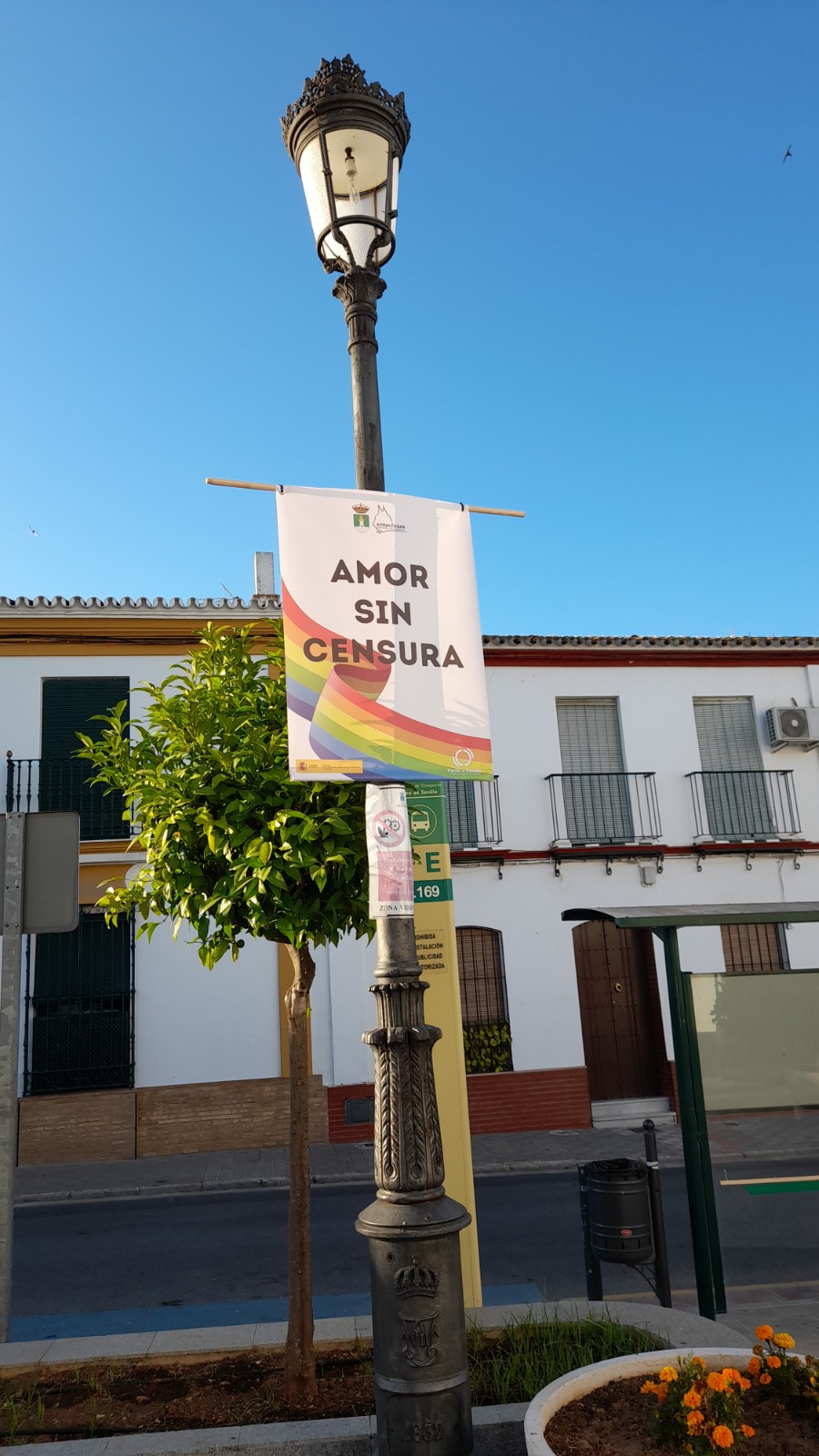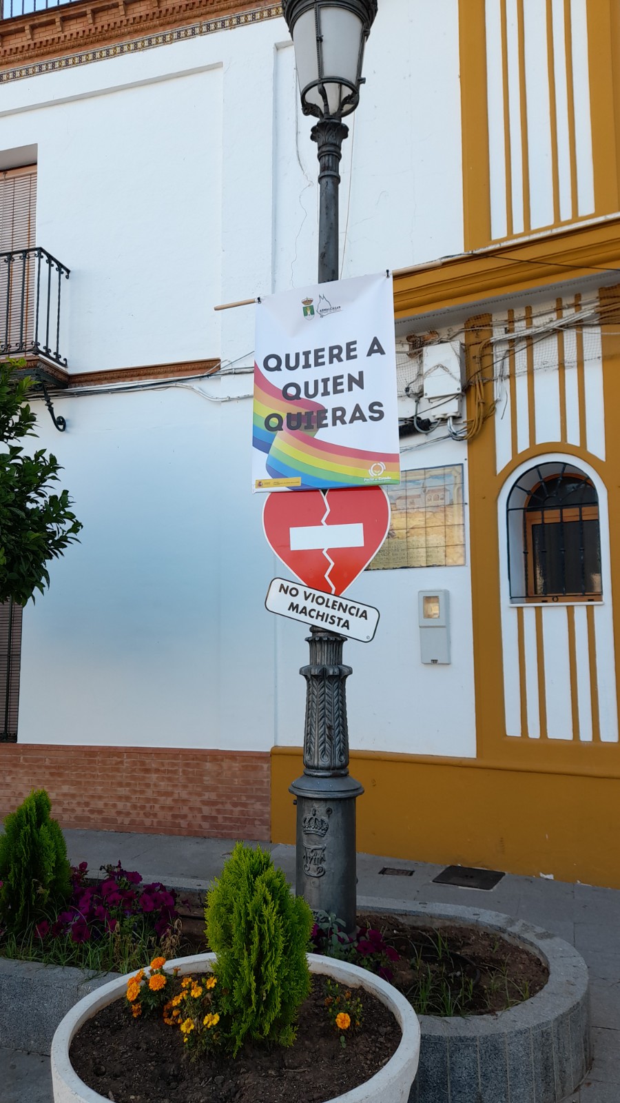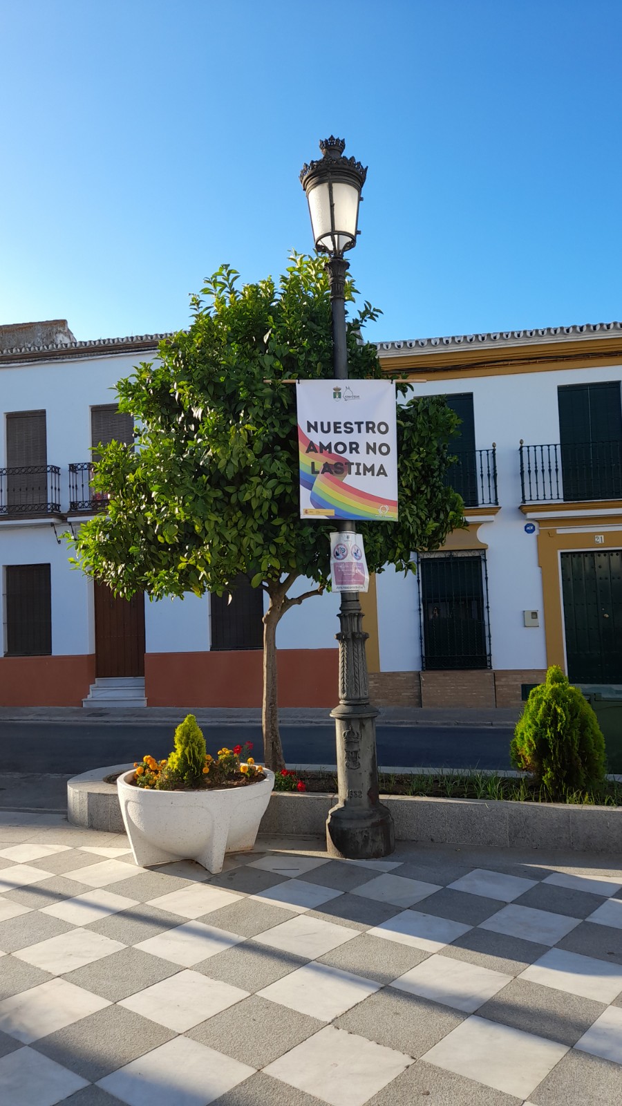 Y desde hoy, se han colocado tanto en la Plaza del Cabildo, como en la Avda. Ntro Padre Jesús, diversas banderolas con mensajes reivindicativos en materia de igualdad ante la diversidad sexual.