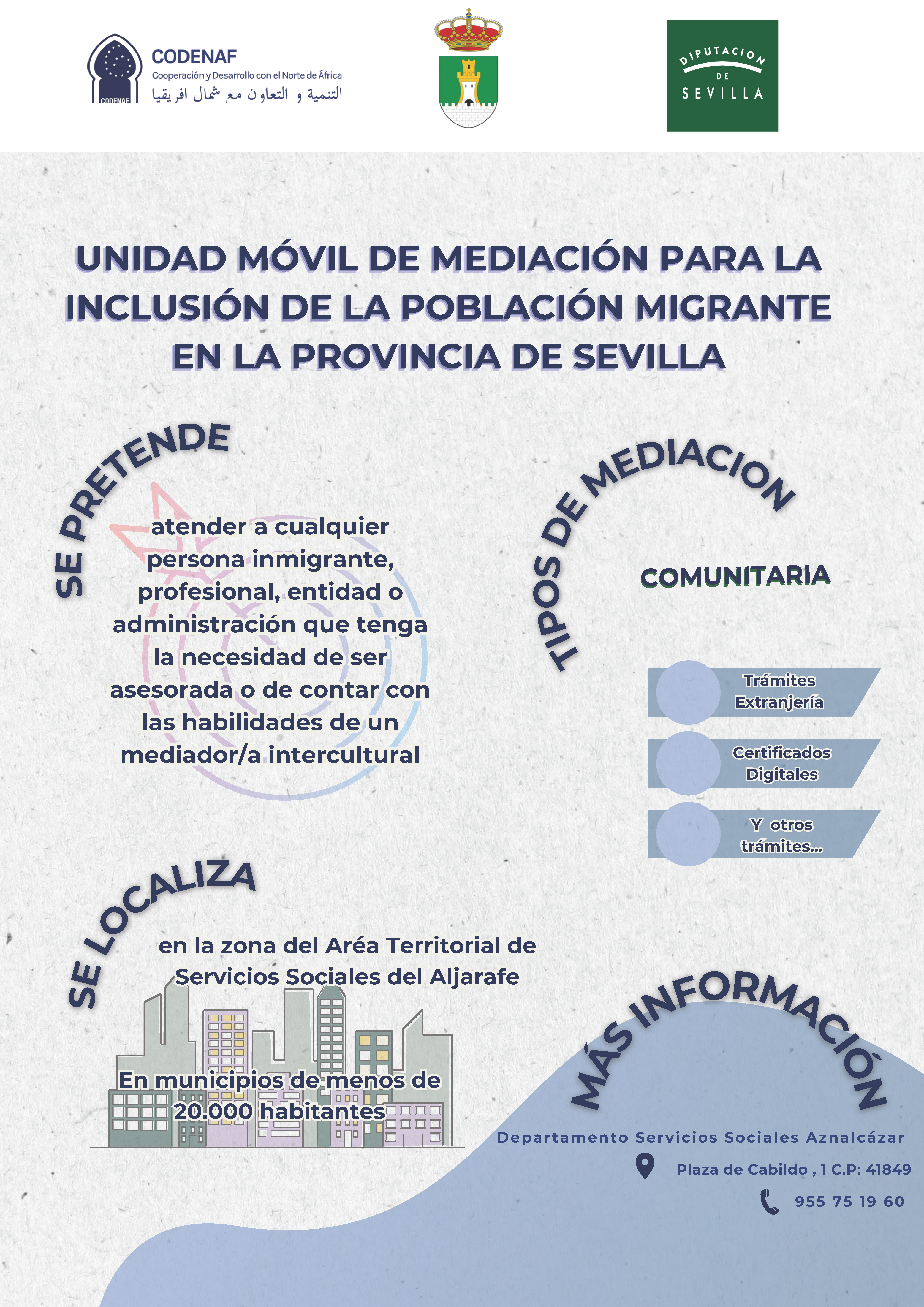 Desde el área de Servicios Sociales con la colaboración de Diputación de Sevilla y CODENAF se ofrece un nuevo servicio de mediación para la inclusión de la población migrante.