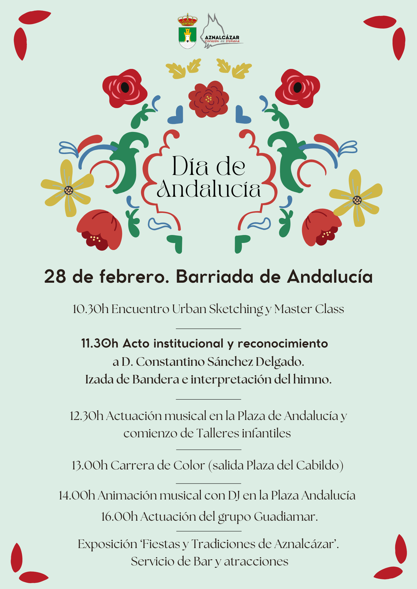 Además, tendremos la exposición fotográfica sobre las Fiestas y Tradiciones de Aznalcázar y el encuentro de pintura Urban Sketching.