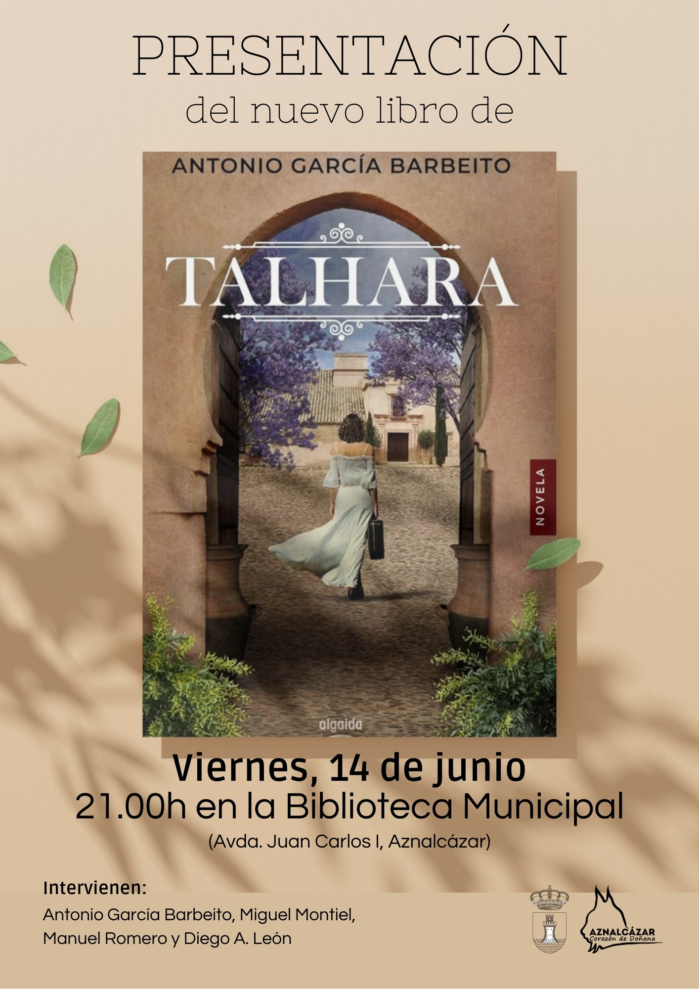 El viernes, 14 de junio a las 21.00h, Antonio García Barbeito presentará en el Salón de Actos de la Biblioteca Municipal de Aználcazar su último libro: Talhara.