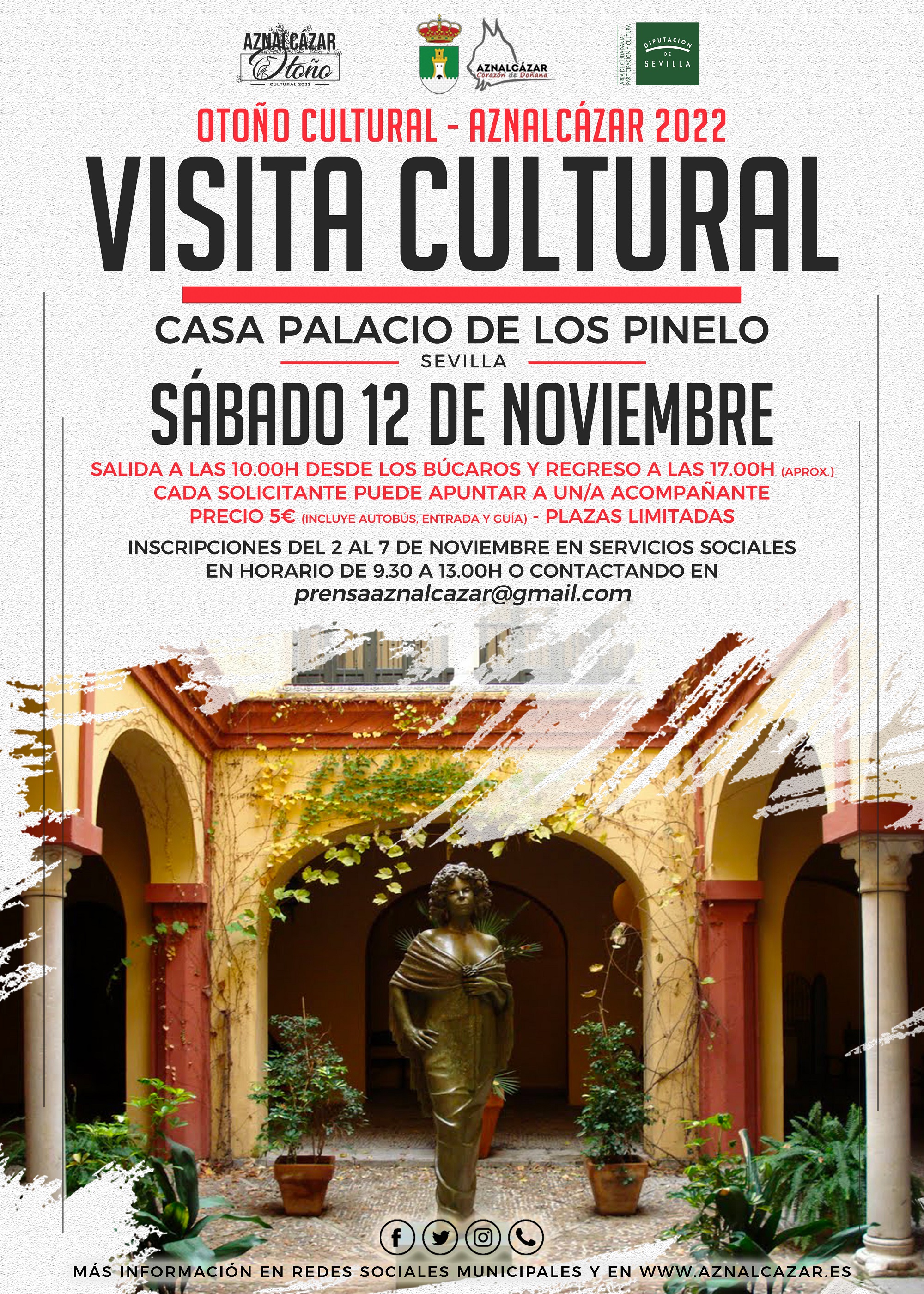 Inscripciones: del 2 al 7 de noviembre en horario de 9:30h a 13:00h en Servicios Sociales o a través del correo: prensaaznalcazar@gmail.com (DURANTE EL MISMO HORARIO)