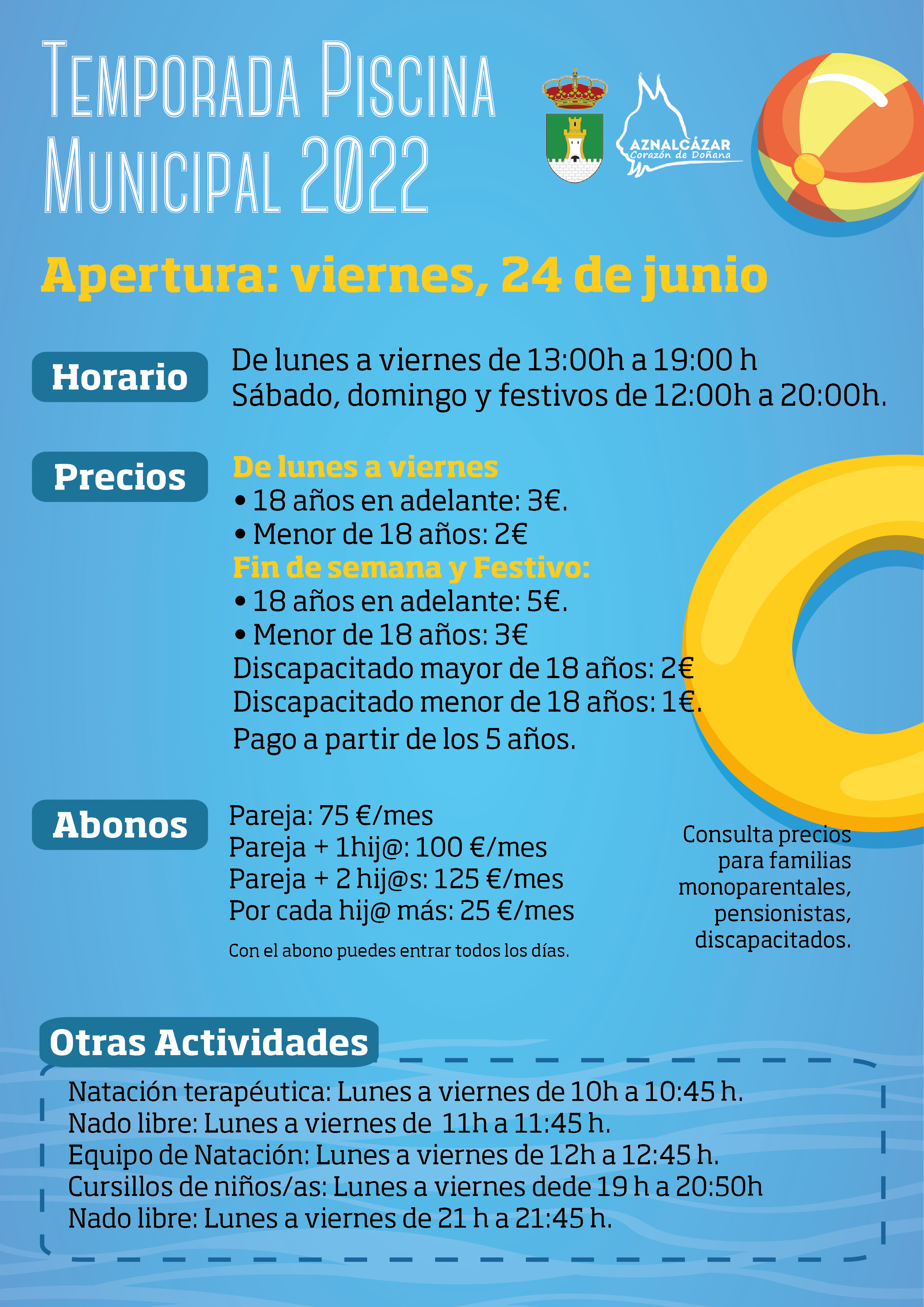 Apertura y horarios de la Temporada de Piscina Municipal 2022