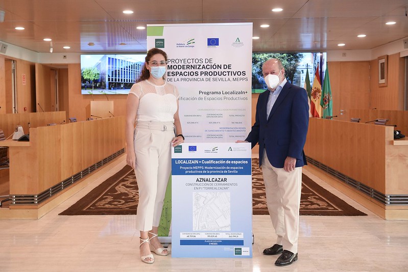 La alcaldesa, Manuela Cabello Gonzalez, acudió ayer a Diputación de Sevilla donde el presidente Rodríguez Villalobos presentó las obras de modernización y mejora de espacios productivos que va a llegar a cabo en 10 municipios de a provincia, entre ellos, Aznalcázar.