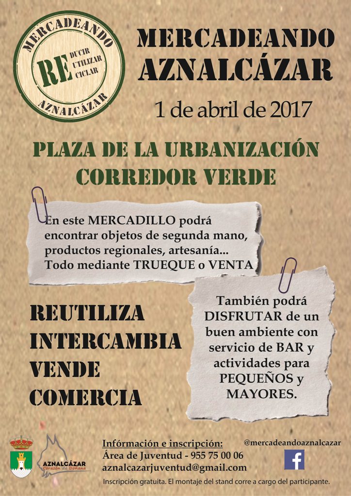 Desde el área de Juventud del Ayuntamiento se está organizado para el sábado 1 de abril una actividad denominada ‘ Mercadeando’ . Esta actividad consiste en crear un mercado en el parque de la Urbanización Corredor Verde que suponga un punto de encuentro, entre vecinos y foráneos, donde se pueda dar una segunda vida a los objetos, mobiliario, textil, etc. a través de la venta o el trueque. Y para que artesanos y productores locales puedan dar a conocer y comercializar sus productos.